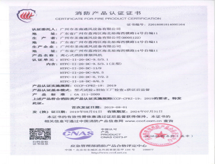 離心式消防排煙風(fēng)機(jī)分型證書(4)