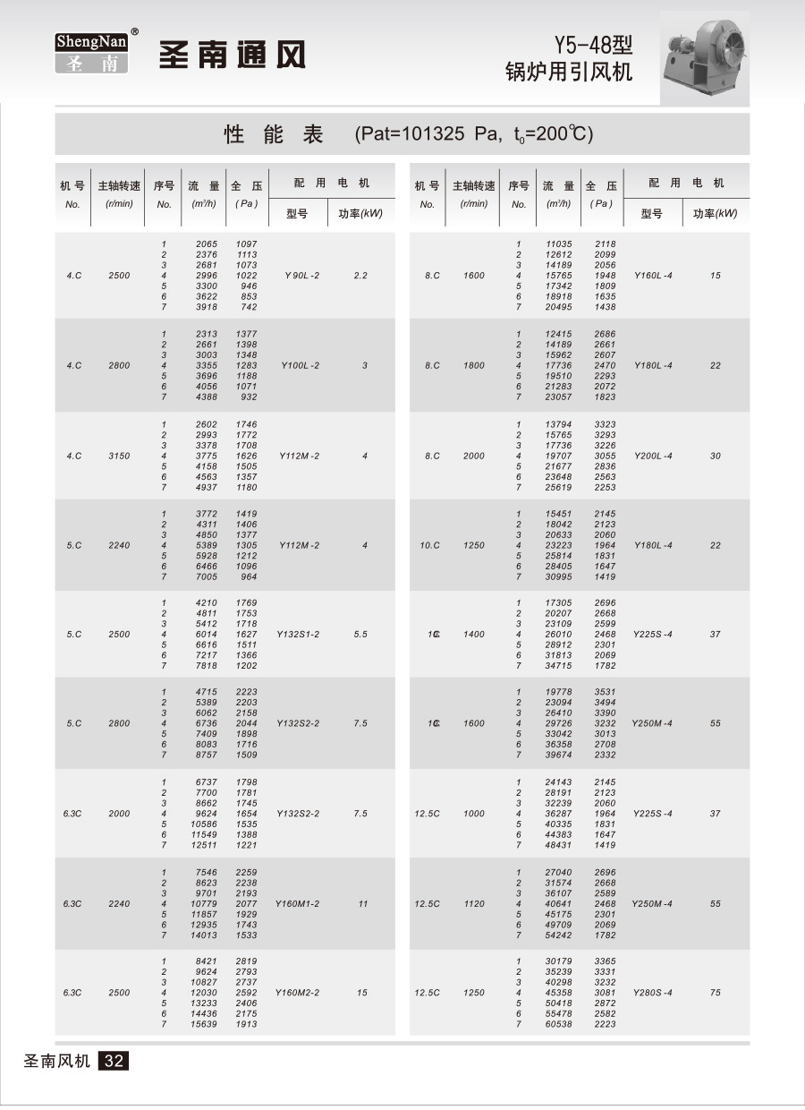 引風(fēng)機(jī)的配用電機(jī)功率是指該風(fēng)機(jī)在選定流量和壓力時(shí)輸送溫度達(dá)200℃的氣體長(zhǎng)期穩(wěn)定工作的功率,若輸送氣體的溫度還達(dá)不到200℃則須通過(guò)閘門等手段減少進(jìn)入風(fēng)機(jī)的風(fēng)量或加大電機(jī)的功率,否則容易造成電機(jī)或電氣故障,乃至燒毀!