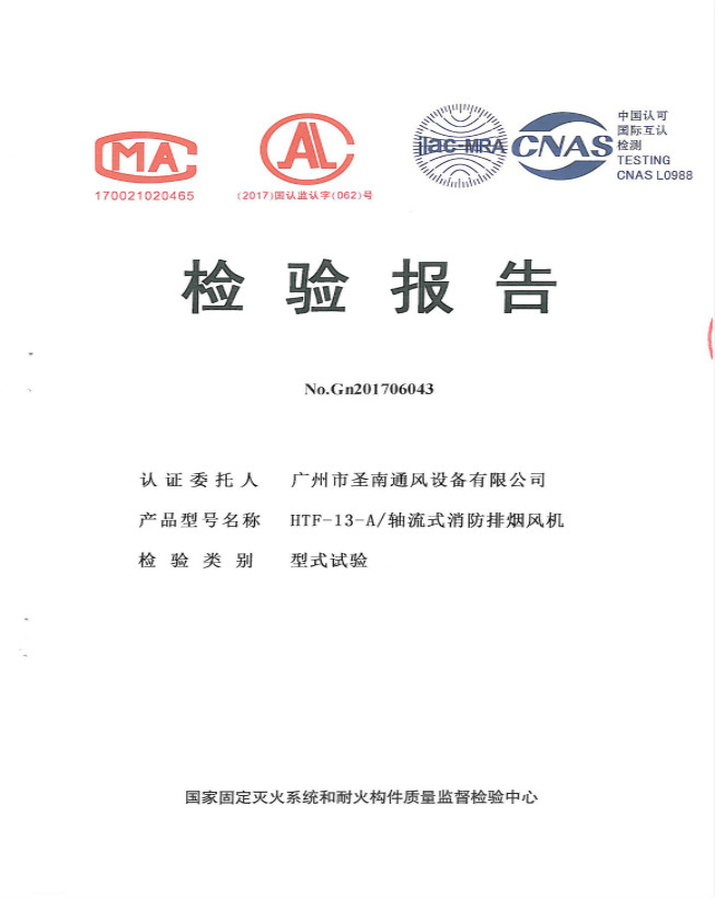 HTF-13-A 軸流式消防風(fēng)機(jī)檢驗(yàn)報(bào)告